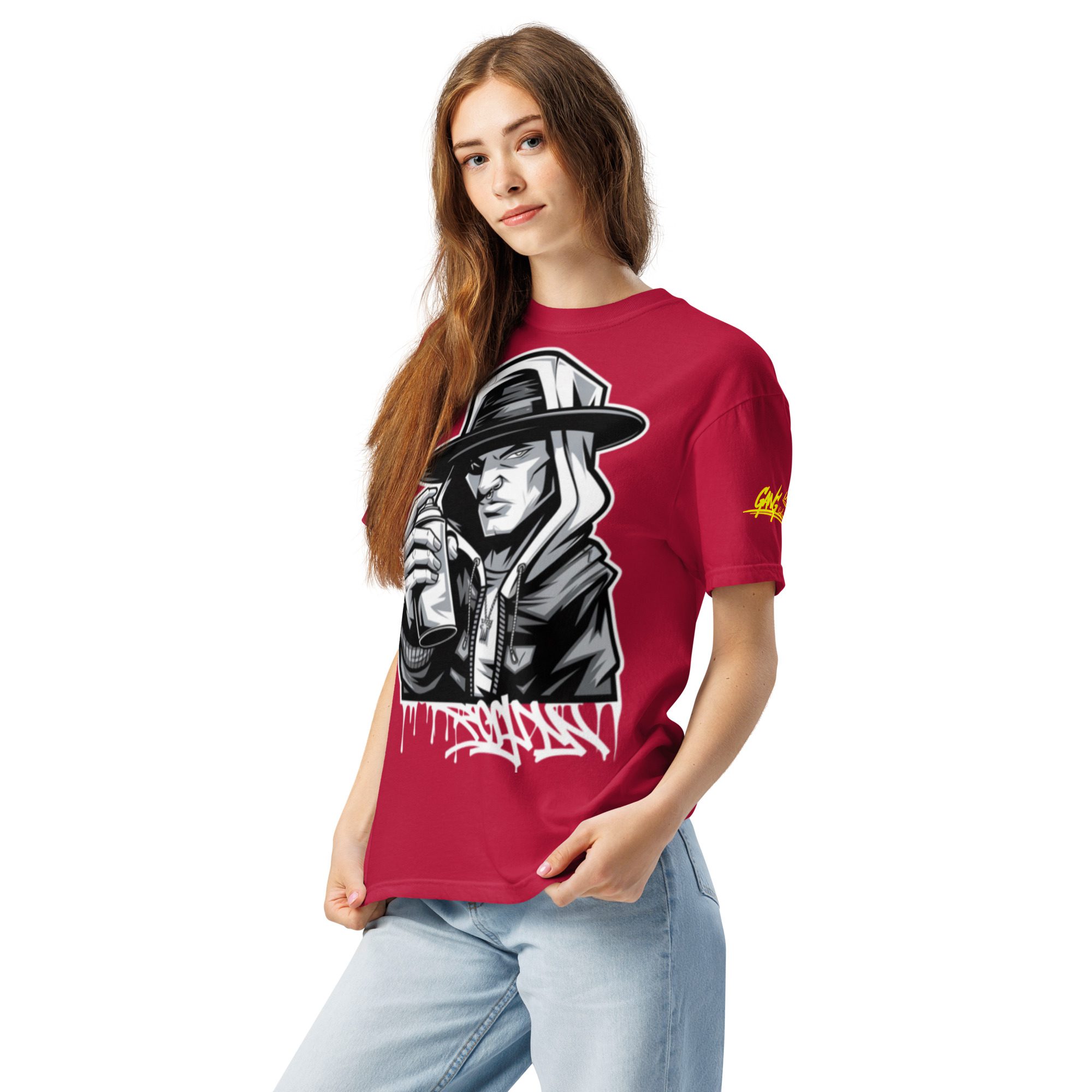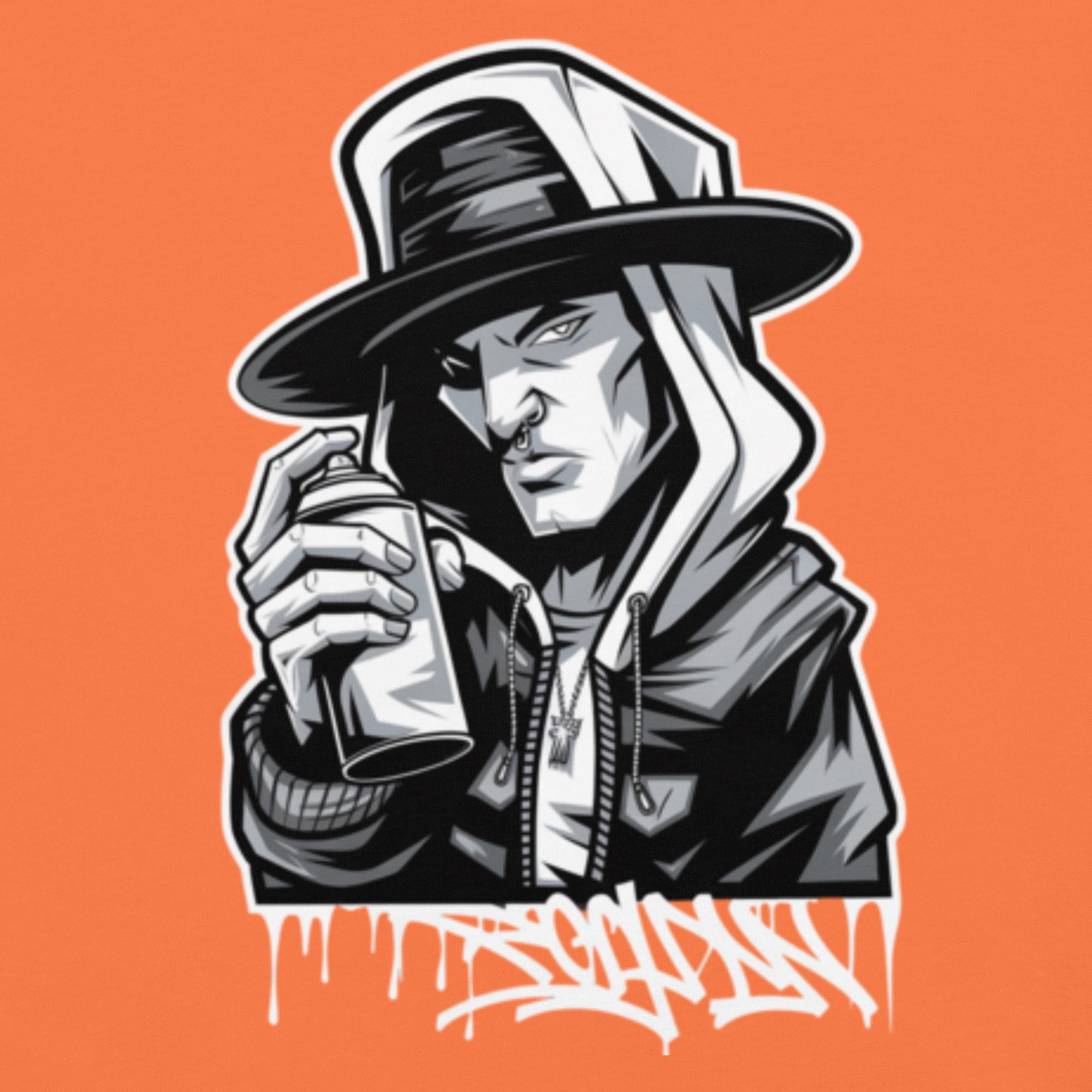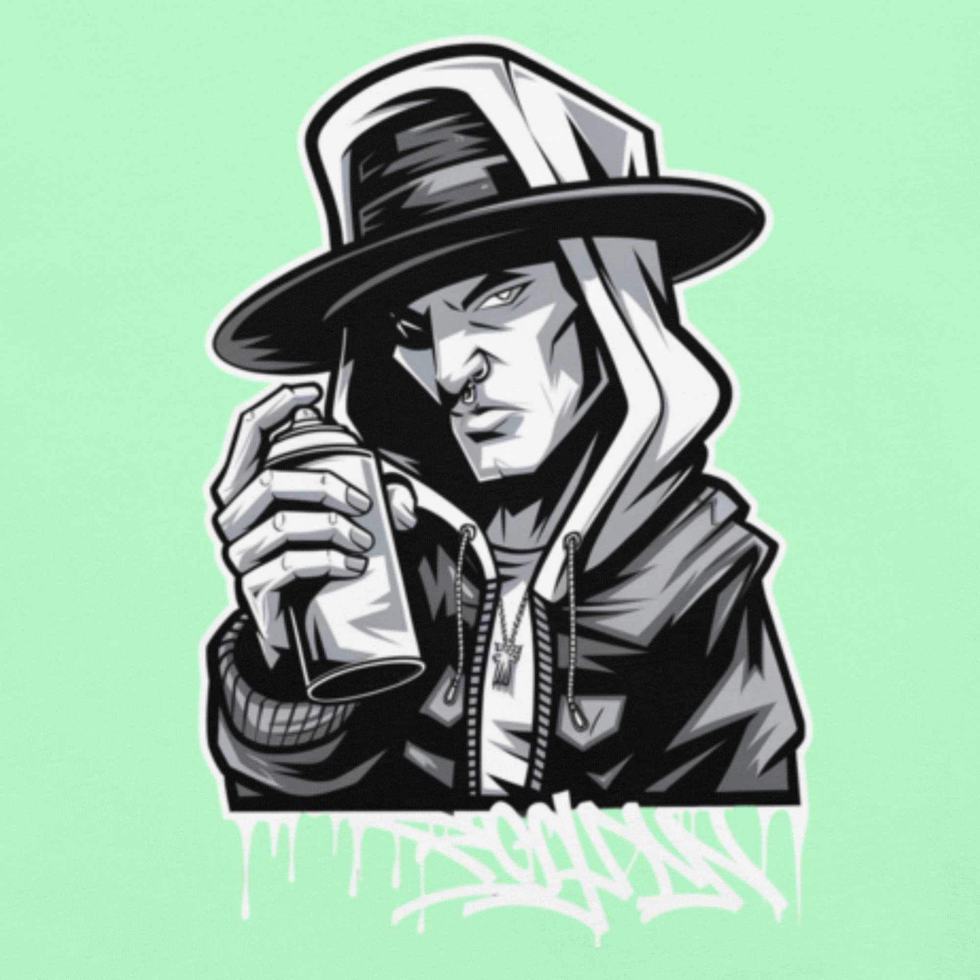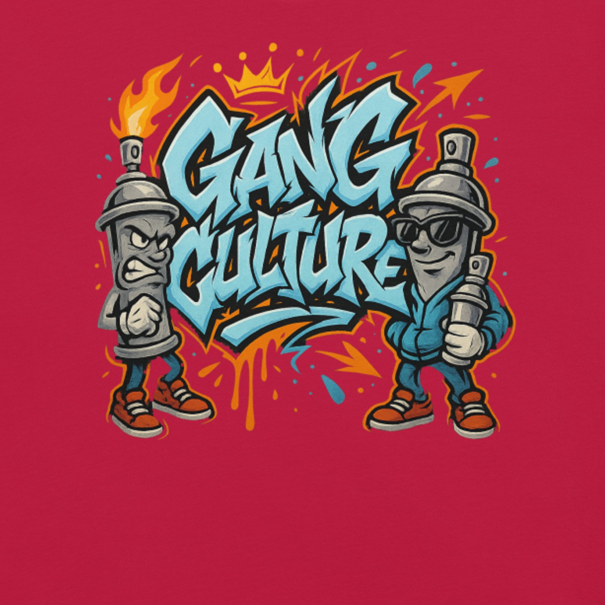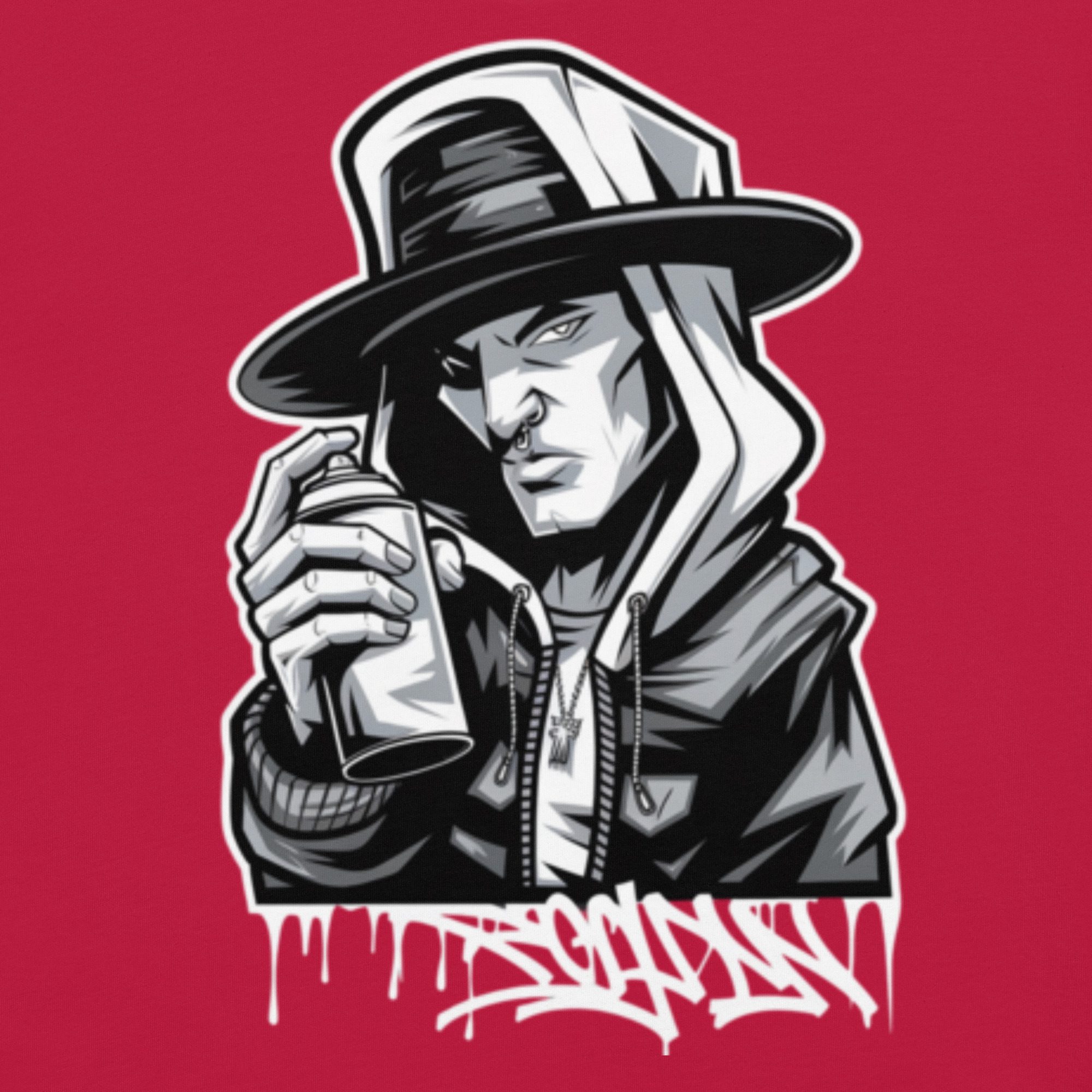 Pokud hledáš tričko, které je pevné, silně strukturované, ale zároveň super měkké a prodyšné – máš ho před sebou. Toto Gang Culture streetwear tričko spojuje komfort a odolnost s originálním graffiti designem. Na přední straně dominuje černobílá ilustrace tajemné postavy v kapuci a klobouku na sytě červeném pozadí, doplněná o nápis ve stylu syrového graffiti.